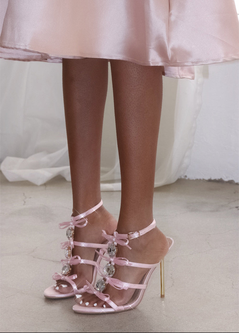 • SATIN BOW & RHINESTONE UPPER